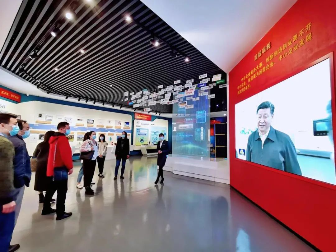 活动伊始,在馆内讲解员的带领下,党员老师们一同参观了黄埔红创谷“中小企业能办大事”先行示范馆。示范馆内融合展陈展示、政务服务、互动交流、党建活动等功能。党员老师们通过观看LED三折展示屏宣传片,多媒体互动、场景模拟等方式全方位感受黄埔区、广州开发区践行习近平总书记殷殷嘱托,全力打造“中小企业能办大事”先行示范区的生动实践,切实体验辖内中小企业办成大事的丰硕成果。三年来,为进一步强化党建领航、聚力发展,全面提升两新组织党建水平,黄埔区委组织部、广州开发区党工委组织部创新打造黄埔两新组织党建创新中心暨“中小企业能办大事”实践基地,通过构建“15分钟党群服务圈”,做到“企业有呼、服务必应”。党建引领,创造性抓好非公企业党建,激发中小企业发展的“红色引擎”,激活和提升两新组织的创新力和价值,以党建为创新发展赋能。