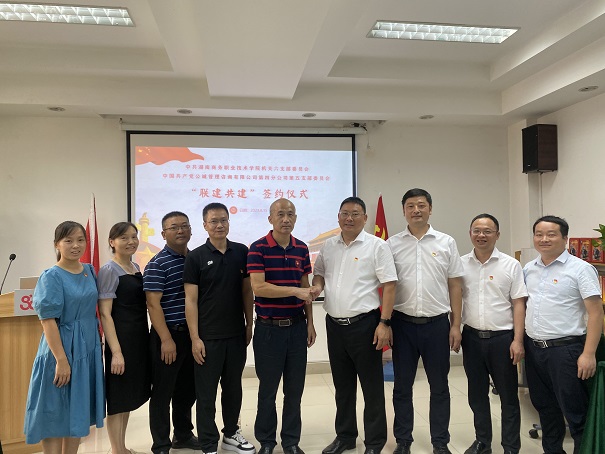 2023年8月15日,中共湖南商务职业技术学院机关六支部委员会与公诚咨询第四分公司第五党支部成功签订联建共建协议。机关六支部委员会党支部书记袁仁水、公诚咨询湖南分公司总经理陈新学、副总经理兼党支部书记程波及双方共10多名党员代表参加了此次协议签订仪式。