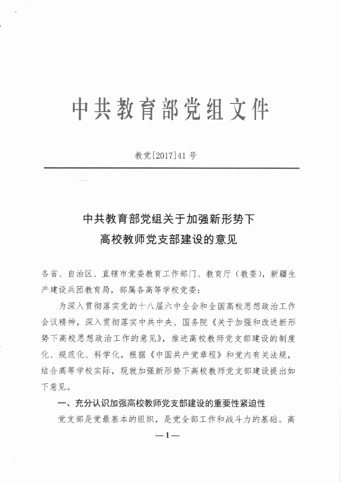 转发中共教育部党组关于加强新形势下高校教师党支部建设的意见的通知