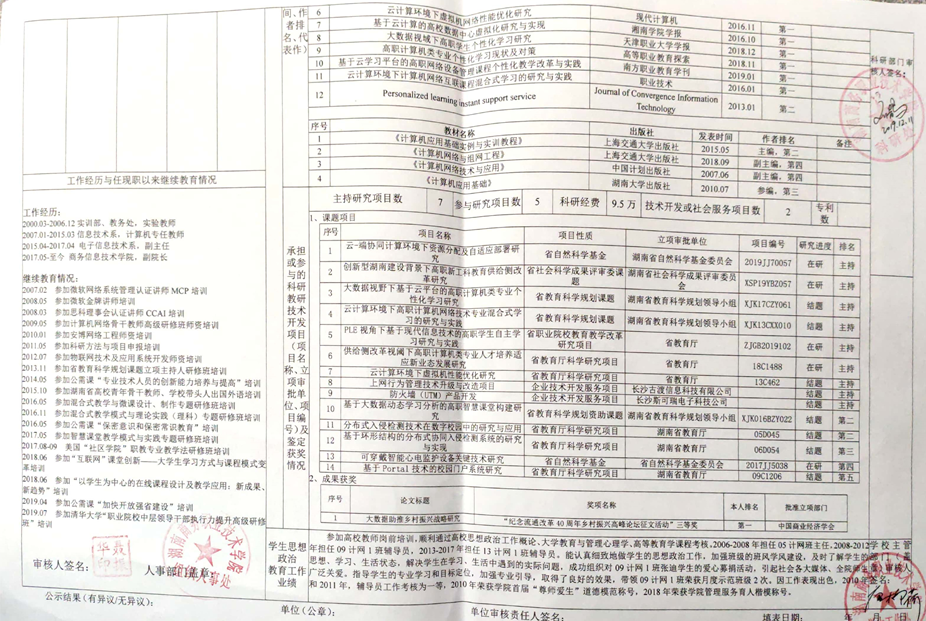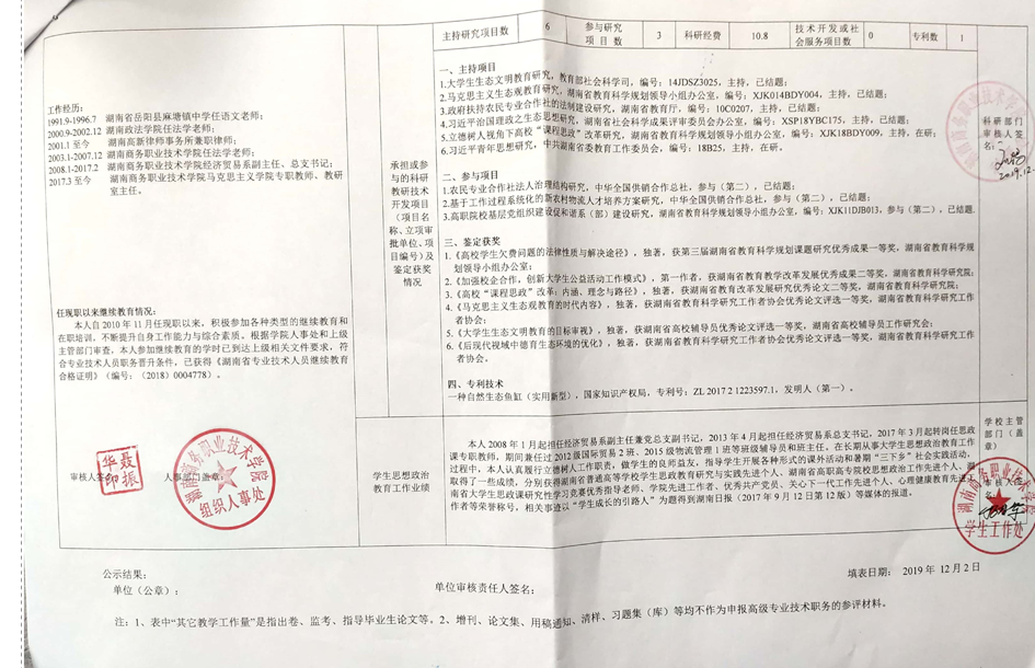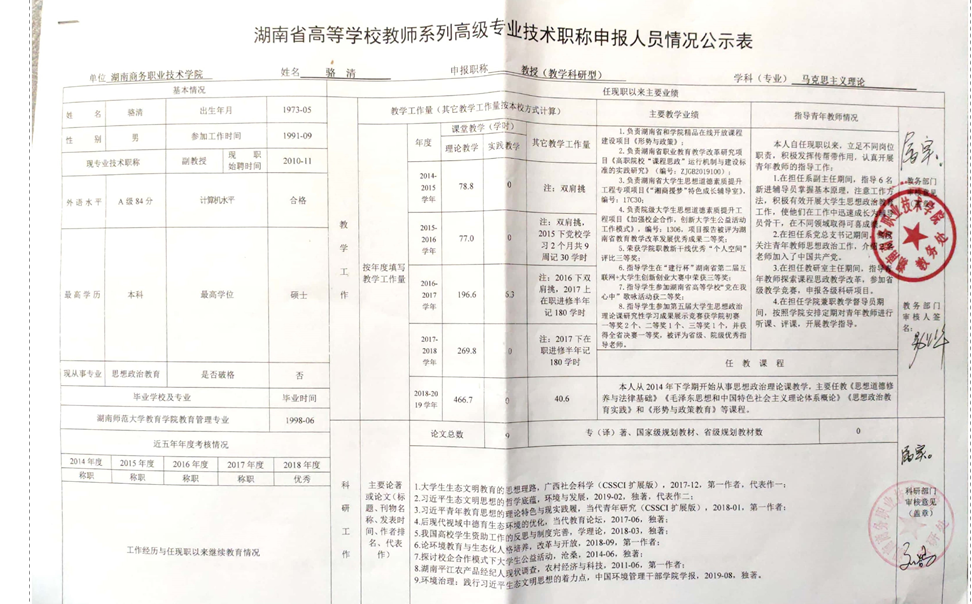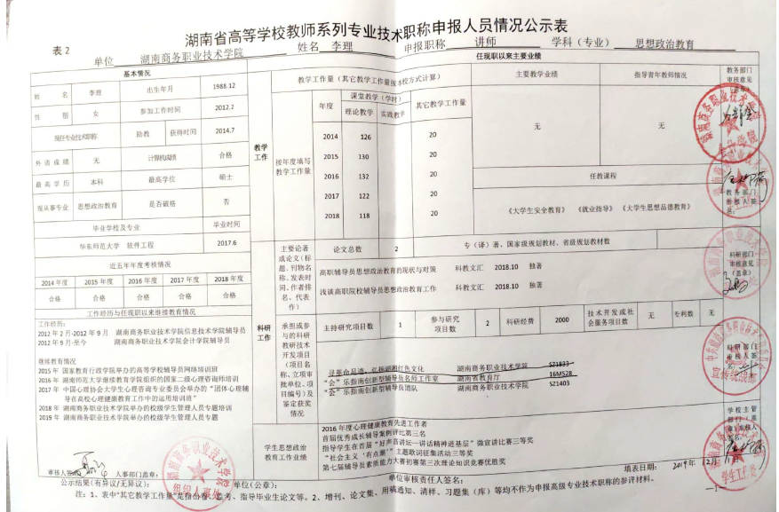 根据《湖南商务职业技术学院2019年高等学校教师系列专业技术职称(职务)评审工作方案》精神,学院高教系列专业技术职称评审教学测评委员会、科研测评委员会和综合测评委员会赋分,现将申报高教系列专业技术职称校内测评结果及各参评人员公示表予以公示(详见附件)。